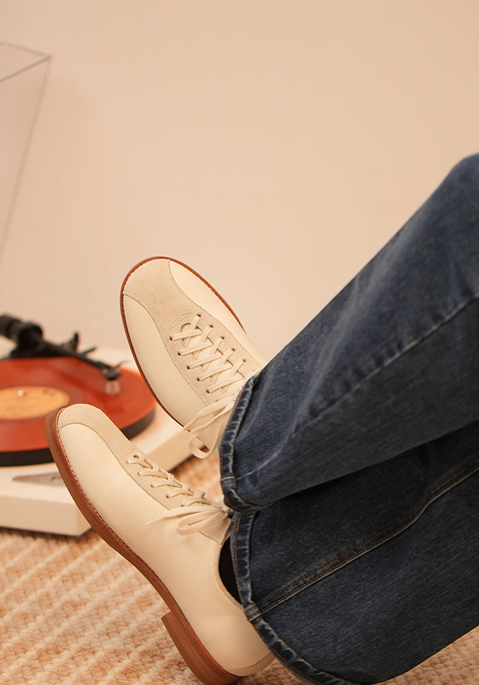 A blend of vintage style and bowling elements, the silhouette of the bowling shoe is modeled after the silhouette of the leather upper and wooden sole, and the stitching details and materials are restored to the characteristics of the period at the time.